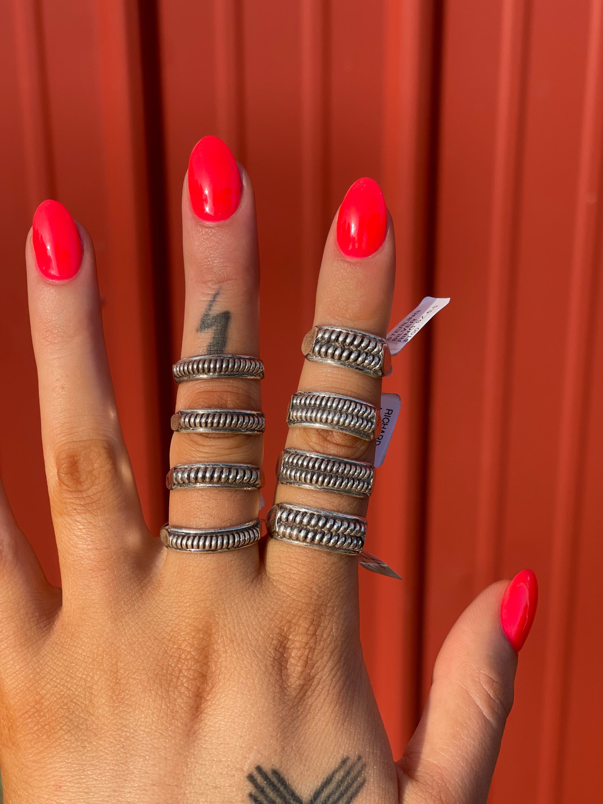 Pictured on middle finger.